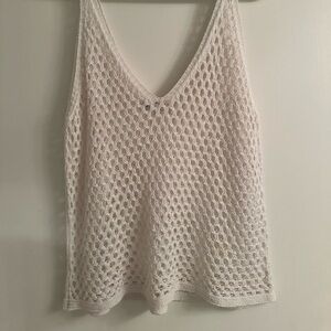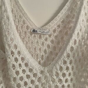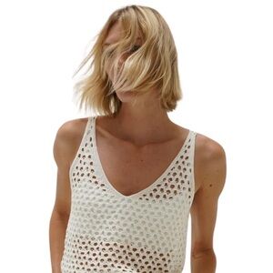 NWOT Zara Open Knit V-Neck Tank in White Size L. Dimensions in photos. Fits closer to a Medium.