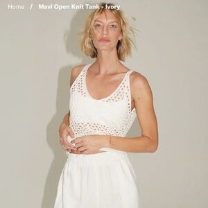 An open knit V neck tank with thick straps and a ribbed hemline. Pair it with any of your favorite open knit bottoms for an effortless summer set.
