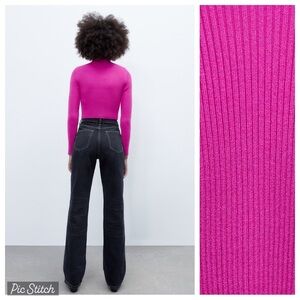 NWOT. Zara Pink Cropped Mock Neck Sweater. Size M.
