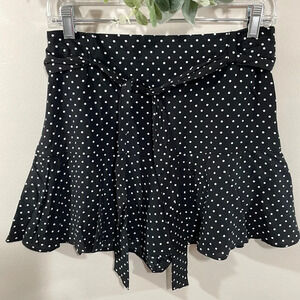 NWOT Zara Polka Dot Mini Skort Black and White in size M. Excellent new condition. First photo is a stock photo. Lightweight fabric, hidden side zipper, tie belt at waist, belt loops, flutter style, built in shorts. Please see photos for approximate measurements and details. Item may show a difference in color based upon photography and perception. Photos are part of the description, as everyone’s level of condition may vary. From smoke free and pet free home. All packages are shipped the same or next business day.