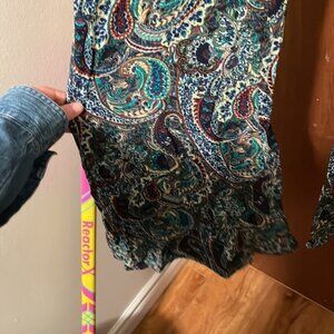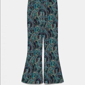 New without tags pants from Zara. In a super cute and bright paisley print. Flare leg and can be cropped depending on your height. Never been worn, tag just fell off them and now I can’t find it. Super thin and flowy for summer.
