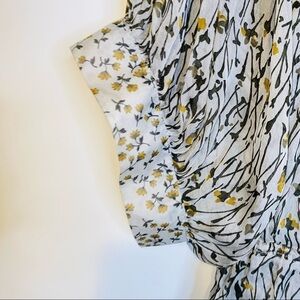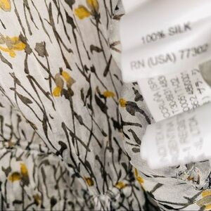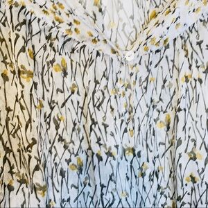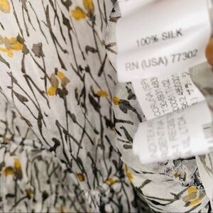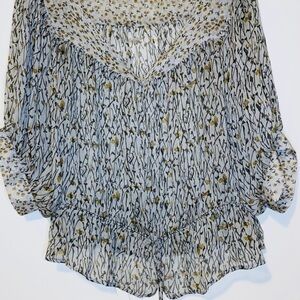 NWOT Zara Sage Floral Boho 100% Silk Sheer 3/4 Cuffed Sleeve Top Size M
