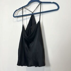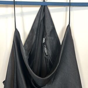 NWOT Zara Satin Elegant Black Women's Cowl Neck Tank Top