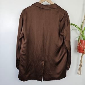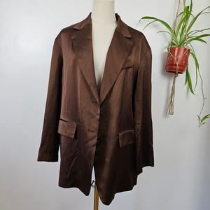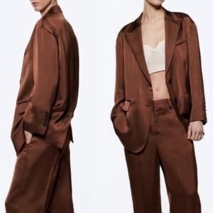 NWOT Zara Single Breasted Oversized Satin Blazer Jacket Sz M Brown NEW