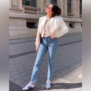 NWOT Zara Textured Ivory Cropped Bomber Jacket Size Large