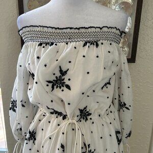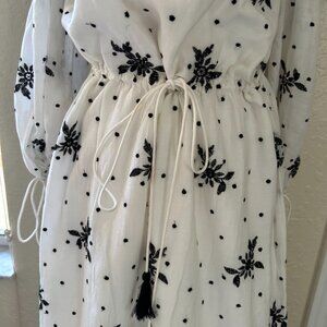 NWOT Zara White and Black Embroidered Maxi Dress