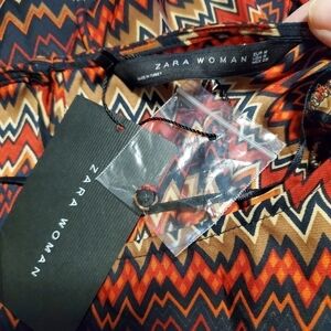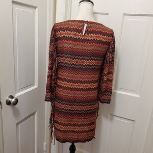 NWOT Zara Women Chevron Tribal Fringe Accent Dress Size Medium, Unique, Colorful