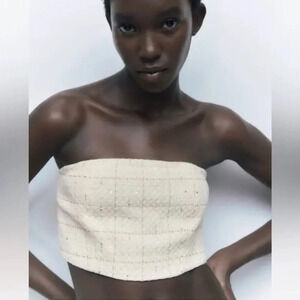 NWOT Zara Women's Medium Ivory Textured Strapless Cropped Tube Top