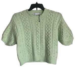NWOT Zara Wool & Alpaca Blend Light Green Knit Sweater with Pearls