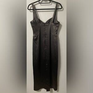 A corset dress with a flattering V-neckline with hoops and wide straps, ideal even for girls with large breasts. Midi length, the bottom has an opening at the back and the closure is at the back with a zipper hidden in the seam. Combine it with high boots or flat shoes for the day and with jeweled shoes and heels for special occasions.
