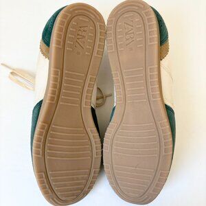 NWOT Zara white and green sneakers with yellow on the heel. These are the perfect stylish tennis shoes that will go with any outfit. The colorway is perfection. Excellent condition, new without tags 38