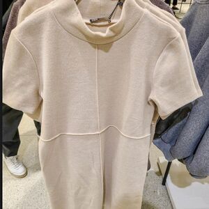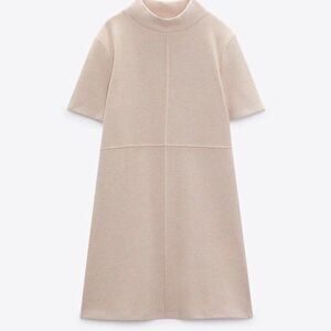 NWOT Zara Women's Cream Mock Neck Short Sleeve Mini Dress
