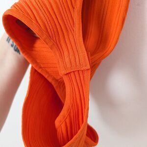 NWOT Zara orange ribbed mockneck one sleeve asymmetrical bodycon bodysuit top