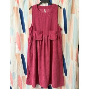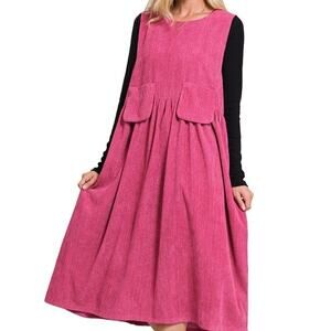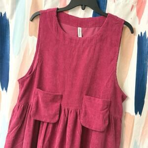 NWOT Zenana Outfitters Magenta Corduroy Overall Pocket Sleeveless Dress Small
