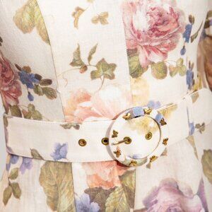 Zimmermann Luminosity Lyrical V Neck Bell Sleeve Floral Linen Mini Dress