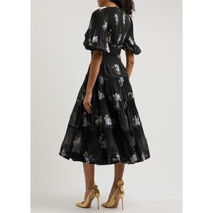 Pleated Midi Dress in Black Iris Floral from Zimmermann's Fall 2024 Collection.