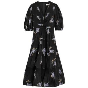 Pleated Midi Dress in Black Iris Floral from Zimmermann's Fall 2024 Collection.