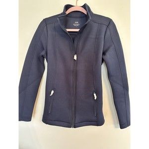 NWOT Zuda Belted Scuba Knit Front Zip Jacket Navy Sz S