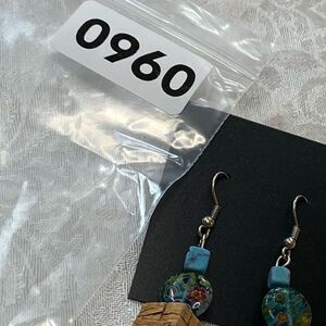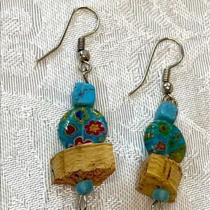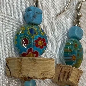 NWOT amazing floral glass beads and cork dangle earrings natural stone too!