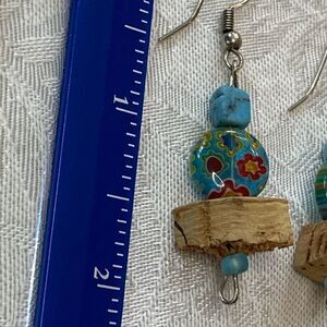 NWOT amazing floral glass beads natural stone and cork dangle earrings boho