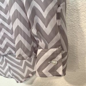 NWOT a.n.a. HiLo Tunic 1/4 Button Up Semi Sheer Top Gray White Chevron Sz Small