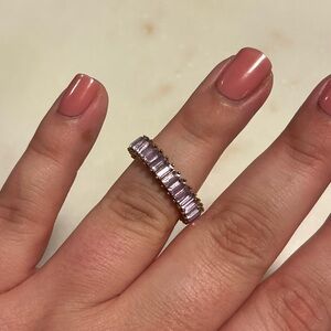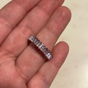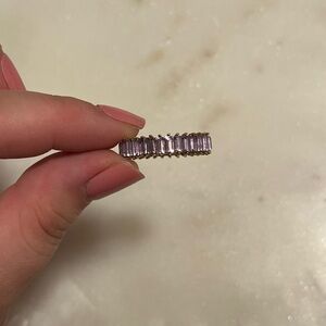 light purple lavender color, baguette style, stamped with baublebar logo, non tarnish