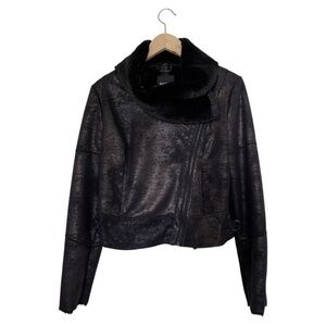 NWOT. bebe Cropped Faux leather Biker Jacket with Shearling-Effect Lining. Color: Black. Size: Small