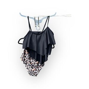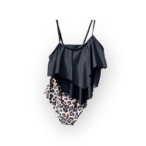 NWOT black/cheetah print 2 piece swimsuit women’s size large