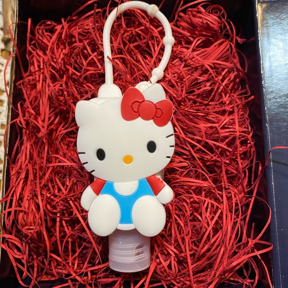 Adorable NWOT Hello Kitty hand sanitizer holder (hand sanitizer included) & childβs soft toothbrush bundle