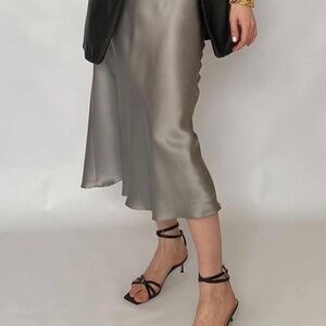 A French-inspired bias-cut design makes it drape and move just so – equally chic for a night out or a day about town. Zipper styling. Pair with a simple white t-shirt and sneakers or dress it up with a blazer and heels. Excellent new without tag. Note. Possible slight color variations between the skirt and your screen due to differences in computer monitors. Photo with model in heels is for illustration purposes only.