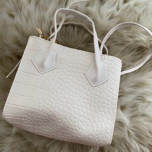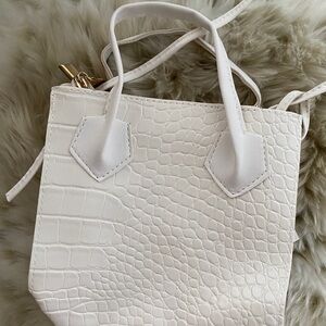 Zipper closure at top 7”x7”x2” Adjustable strap New without tag Handles at top