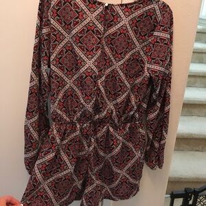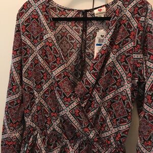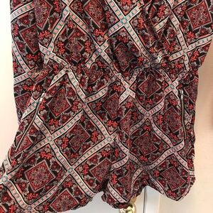 It has zip up pockets!!! I love this romper but it’s just a little too short torso wise for me to make it work. Elastic at waist, below measurement is without any stretch.