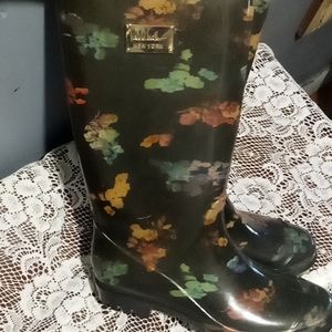 Super cute women's black with floral design rain boots they are Nwot so perfect for anyone looking for a nice pair of rain boots to wear this fall they are a size 8 and made by Nicole Miller New York. these are in perfect condition nwot never worn. and they are absolutely beautiful and would be a great addition to anyones wardrobe the quality is amazing and they are very stylish and would look good with any look