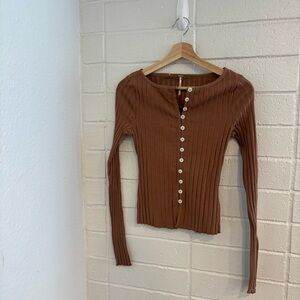 NWOT free people Tilly ribbed longsleeve cardigan in tan