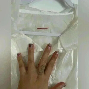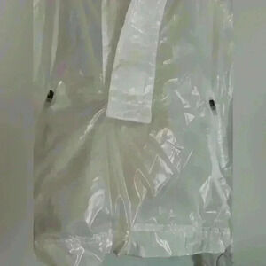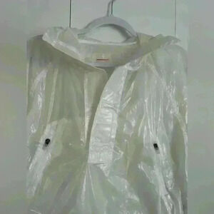 This is a sheer winder breaker material. New without tags. Great for wearing a cute colored sport bra under. Has a Velcro closure 3/4 on front with 2 front pockets and a large back pocket with a hang tag.