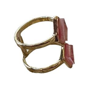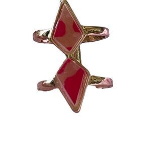 NWOT gold tone diamond shaped red pink enamel ring US size 7