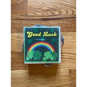NWOT good luck ceramic coasters/ cork backing /4x4 with holder St Patrick day