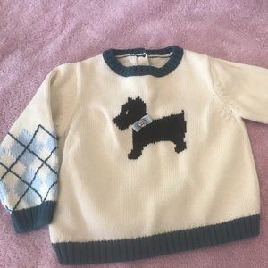 Sweater from the line blue and black colors on this sweater argyle accent sweetest puppy puppie dog wearing a shiny velvet collar