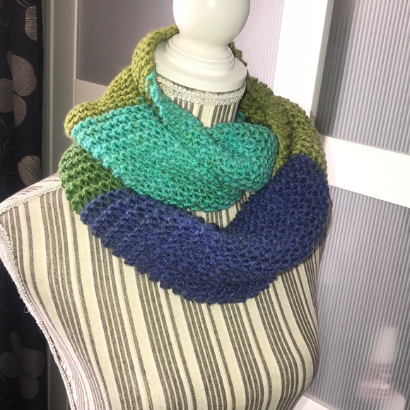 Stunning handmade infinity scarf (made by my amazing step mom). Soft. Greens and blues. Infinity scarf.