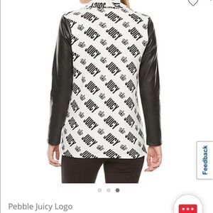 White & black contrast logo (pebble juicy logo) Juicy By Juicy Couture French Terry mixed media & faux leather sleeves Womens Regular Fit Blazer/jacket/sweatshirt/shawl/ cardigan/open front drape front asymmetrical draped - minimalistic, Y2K Crown royal royalty queen
