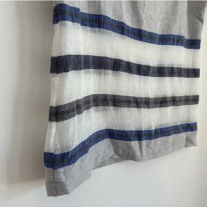 NWOT lemlem 100% cotton top featuring a woven gray upper and semi-sheer white lower half with blue and navy horizontal stripes. Lightweight, airy, and effortlessly chic — perfect for warm-weather layering or resort wear.