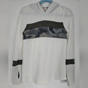 NWOT boutique lightweight hoodie white with green and camo. Thumbholes on each sleeve. Very soft material. Size small.