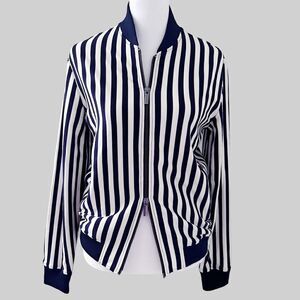 •Item has design quality in fabrication, finished pockets, zipper placement with symmetry in stripe pattern, knitted jersey collar is thick and item is sustainable for years