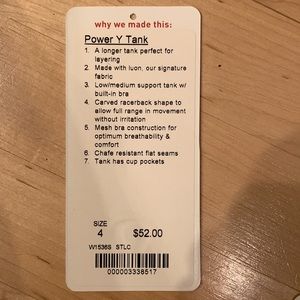 NWOT lululemon power y tank