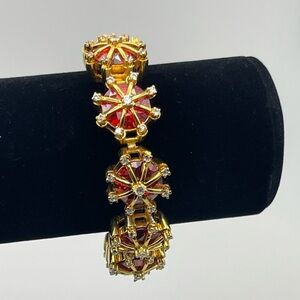 NWOT nOir Jewelry Gold Ton and Orange Red Statement Cage Bracelet