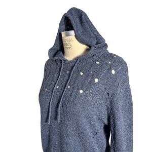 NWOT one gray day Open Weave Hooded Blue Sweater Size Small
