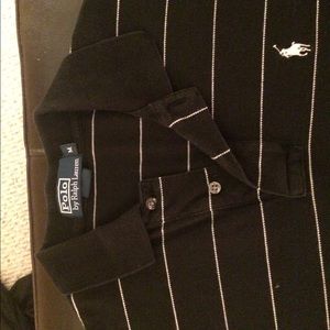 Black with white stripes. Ralph Lauren polo size medium. Never worn