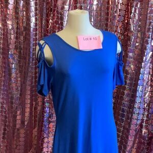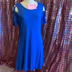 NWOT royal blue shift style dress with peek a boo shoulders in medium