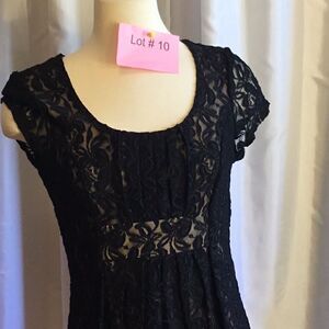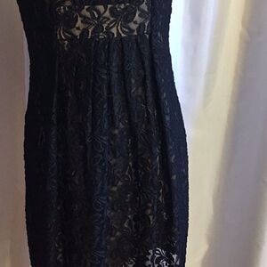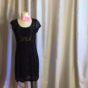 NWOT short sleeved dress in size 8 nude lining with black lace overlay