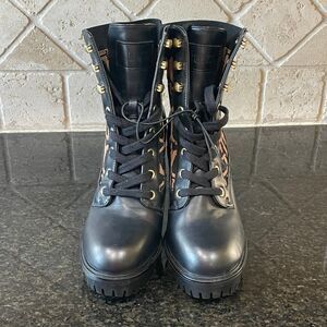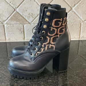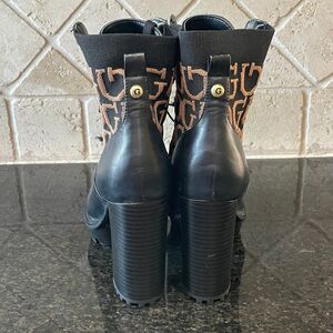 NWOT size 5.5 GUESS Women’s GROWS-R Logo Ankle Boots in Black/Brown